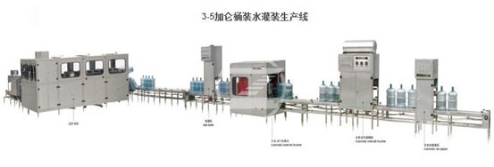 大桶水生產線該生產線是專供3-5加侖桶裝飲用水生產之用,型號有100型、150型、200型、300型、450型、600型、900型、1200型。該系列桶裝生產線由洗瓶、灌裝、封口三部分組成。洗瓶機采用多道洗滌液噴射和消毒液噴射,達到洗滌、消毒的目的,消毒液可以循環使用。封口機可以自動封口,以確保瓶蓋無菌清潔。該系列生產線均可自動洗滌、消毒、灌裝、壓蓋、計數和輸出。具有功能齊全、設計新穎、自動化程度高等特點,是集機、電、氣于一體的新型飲用水桶裝設備。